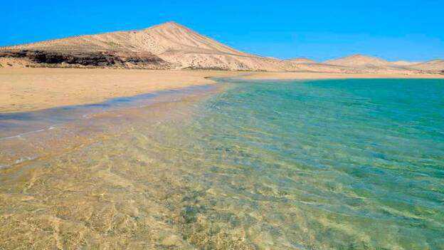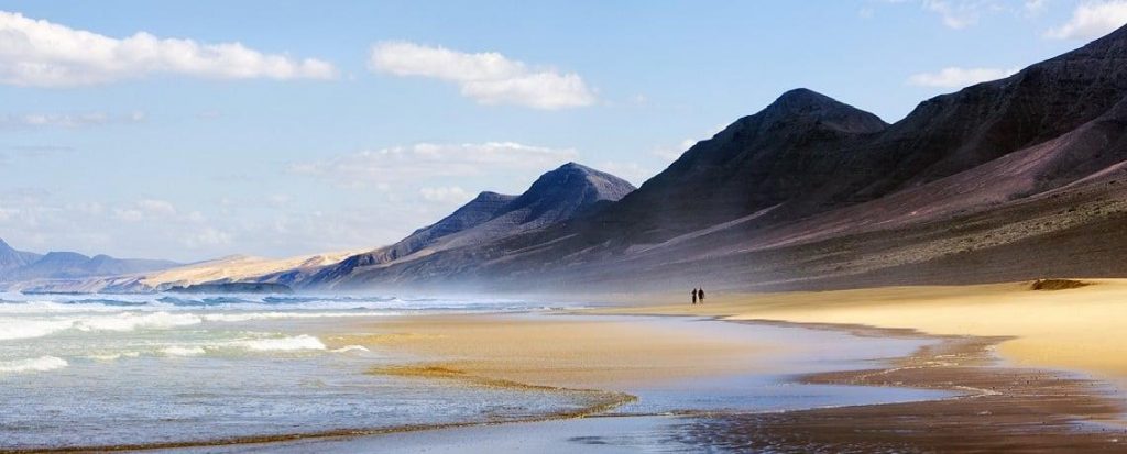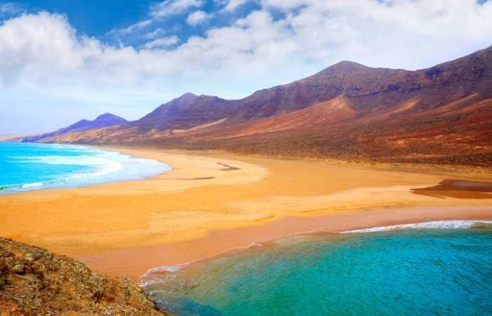 La playa de Cofete, situada en el municipio de Pájara y en la península de Jandía, al sur de la isla de Fuerteventura, es un extenso arenal de más de 13 kilómetros de lago y con 50 metros de ancho. Esta inmensa playa de arena dorada es uno de los rincones más demandados por los turistas más aventureros en su estancia en Fuerteventura.